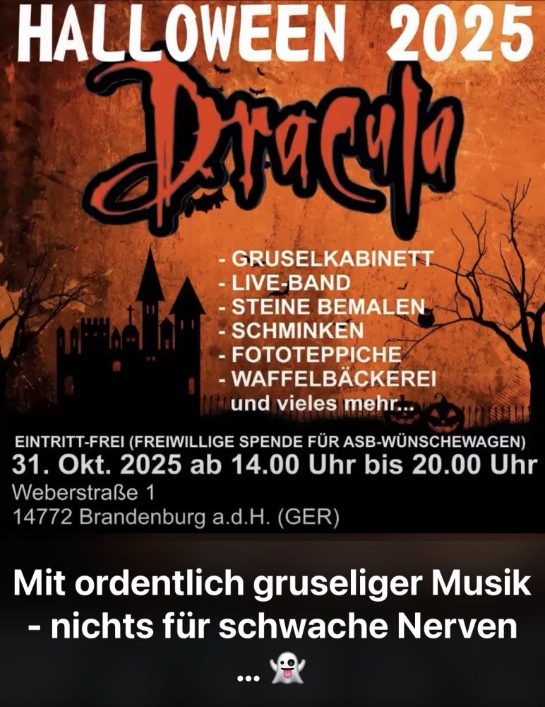 In diesem Jahr wurden Spenden für den ASB Wünschewagen gesammelt. Dieses bundesweite, spendenfinanzierte Angebot erfüllt Menschen an ihrem Lebensende letzte Wünsche.Unsere AllStars wollten natürlich auch in diesem Jahr das Projekt der Familie Weichsel unterstützen. Aus lizenzrechtlichen Gründen durften wir unsere Lieder dort leider nicht singen, so blieb uns nur eine leise musikalische Umrahmung mit zahlreichen Gruselsongs bis zum Ende der Veranstaltung um 20.00 Uhr, die Herr H. Nachtigall in diesen Stunden gern übernahm. Unsere Emma war trotzdem da und hat geschaut, ob auch alles klappt! 👻