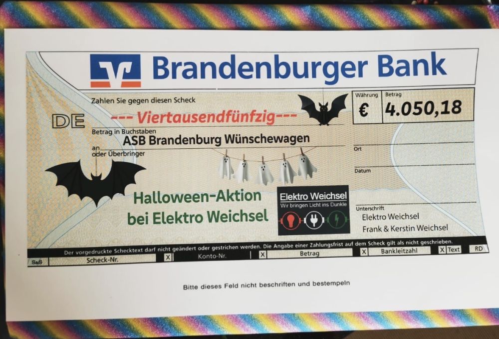 Bis zum gestrigen Freitag mussten wir schon warten, so lange war der Betrag für den ASB Wünschewagen ein großes Geheimnis. Die gesammelte Summe ist großartig. 4050,18 € wurden am 31.10.2025 gespendet - auch im Namen der AllStars, die sich an diesem Projekt beteiligt hatten, ein herzliches Dankeschön an alle fleißigen Spender.