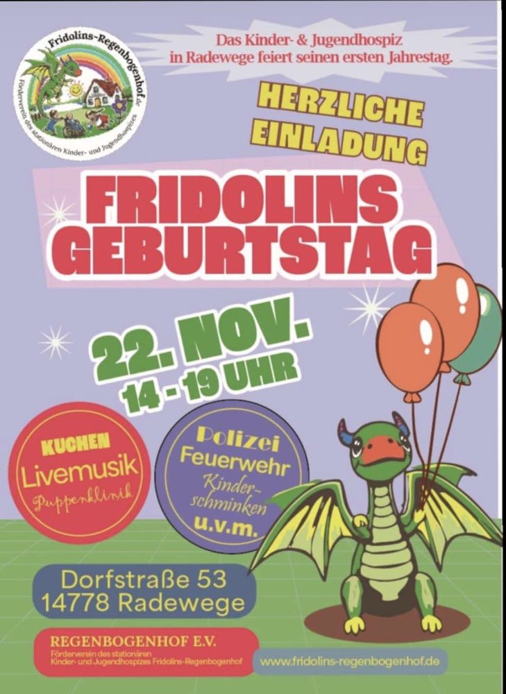 Die AllStars sind am kommenden Sonnabend (22.11.2025) Teil des Programms der Geburtstagsparty des Kinder - und Jugendhospiz in Radewege. Für den Regenbogenhof e.V. lief im vergangenen Jahr die Spendenaktion von Familie Weichsel.