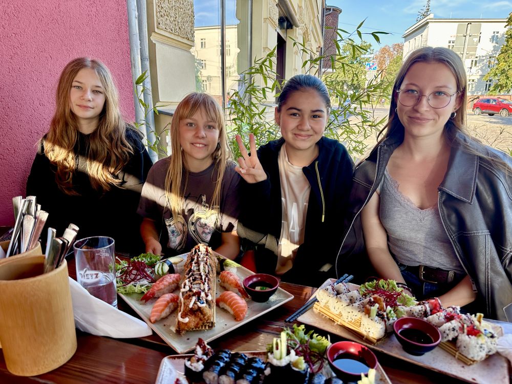 Am Freitag fand ein „Treffen der Genertionen“ unserer AllStars statt. Es gab jede Menge über alte und neue Lieder zu erzählen, was die Mädchen früher gesungen haben und welche Lieder es aktuell sind. Natürlich wurden auch die kommenden Auftritte zum Lesesommerabschluss im Rolandsaal und dem Herbstfest im Krugpark besprochen. Gleichzeitig haben wir offiziell Emma (4a) in die Band aufgenommen. Frieda uńd Zoè konnten leider nicht teilnehmen. 😏
