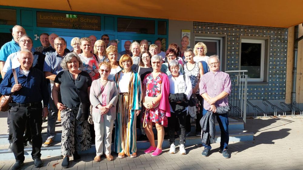 Am 19.09.2025 trafen sich ehemalige Schülerinnen und Schüler des Jahrgangs 1959 (eingeschult 1965) in unserer Schule. In den gut 2 Stunden des Besuches erinnerte man sich an die alten Klassen- und Fachäume, die ehemaligen Lehrerinnen und Lehrer und an so manches “fliegende Stück Kreide”. Sehr interessiert zeigten sich die Besucherinnen und Besucher gegenüber den neu eingerichteten Klassen- und Fachräumen und staunten über die interaktiven Bildschirme. Schon damals war die “Karl Liebknecht Schule” eine modern eingerichtete Schule. Als kleines Denkeschön und für die Unterstützung des Fördervereins wurden Frau Viergutz und Herrn H. Nachtigall 178,- € übergeben. Herzlichen Dank!