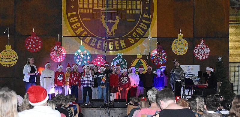 Der heutige Freitag stand ganz im Zeichen des Weihnachtssingens der Luckenberger Schule. Alle Klassen hatten sich mit Klassenleitungen, Musiklehrerinnen und Musiklehrern auf diesen Tag vorbereitet, Das Singen im Klassenraum ist ja immer einfach. Aber plötzlich sitzen fast 400 Personen im Publikum - da stiegen die Aufregung und das Lampenfieber sofort.